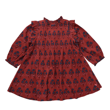 Flower Power! Our Girls Charlie Dress glows with scattered oversized blooms in warm gem tones against a cream ground in our eye-catching Autumn Pansies print. With its long sleeves and tiered silhouette, Charlie is the perfect choice for picture day or school's fall concert. Style highlights include maroon velvet trim at the neck and shoulders and a tiny maroon pearl stitch ruffle trim at the wrist. Invisible zipper at back.