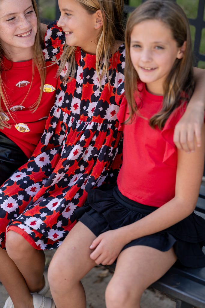 Perfect for school events, family outings, or cheering on your favorite team, this dress is a versatile choice. Pair it with sneakers for a relaxed look or dress it up with sandals for a more polished outfit. Designed for both style and comfort, this dress ensures your little fan is ready for all the excitement of gameday!