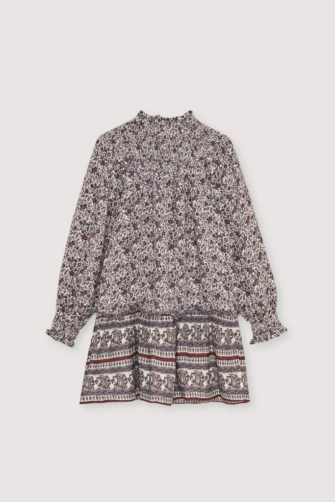 This lightweight dress is crafted from soft double gauze in 100% BCI cotton. It features an all-over floral print, elastic detail at the neckline for easy wear, and a delicate ruffle trim. The skirt is finished with a contrasting border print for an extra charming touch.