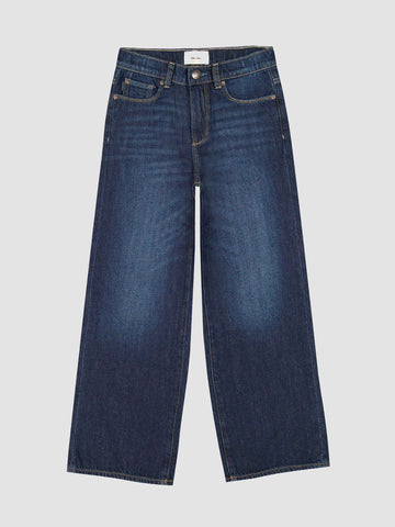 Deep Water is a saturated indigo wash with subtle fading and whiskering in our light-as-air DL Aura fabrication. It features a silver shank, copper rivets, multi-colored stitching, a black back patch and clean hem.