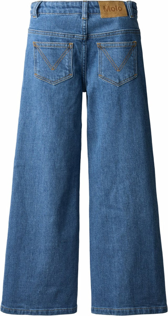 Blue jeans made of organic cotton with stretch, 5 pockets, wide legs and a regular fit. The waistband can be adjusted with an internal elastic for optimal fit for all children. Sizes 92-134 have a snap button to put it easy on and off, while sizes 140-176 have a regular jeans button.