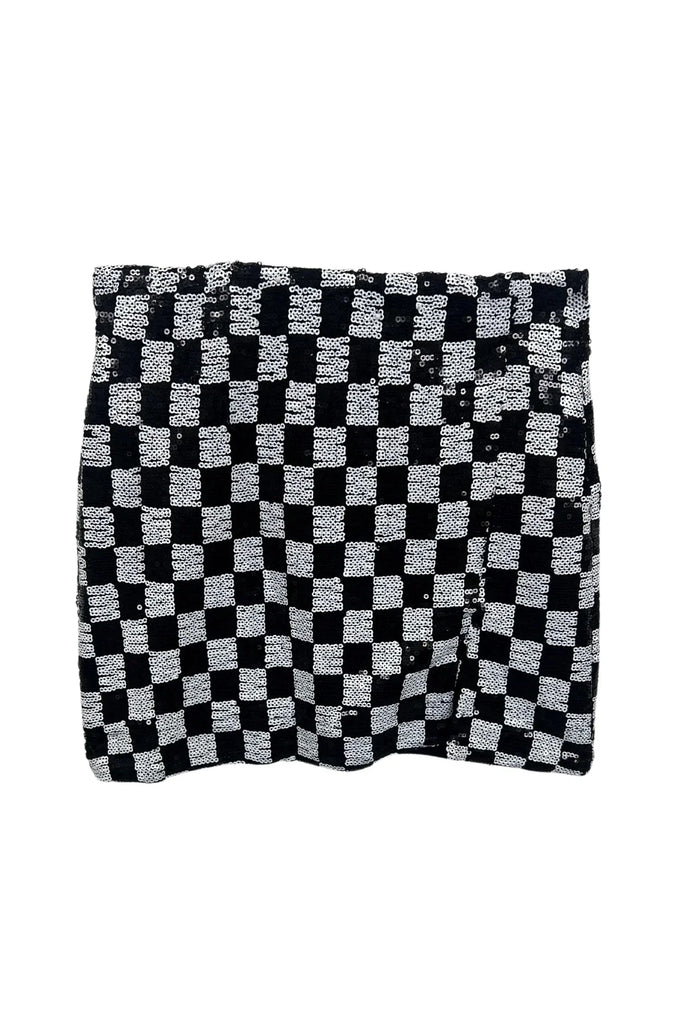 Get ready to shine and show off your style with Taylor Skirt in Black White Checker! This playful skirt features a sparkle of sequins and a slit for added sass. With a back zipper closure, you can easily take your sparkle with you everywhere.