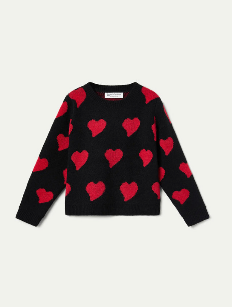 Girls' knitted sweater with a red Heart Attack print. Straight cut, round neck, and fitted cuffs.
