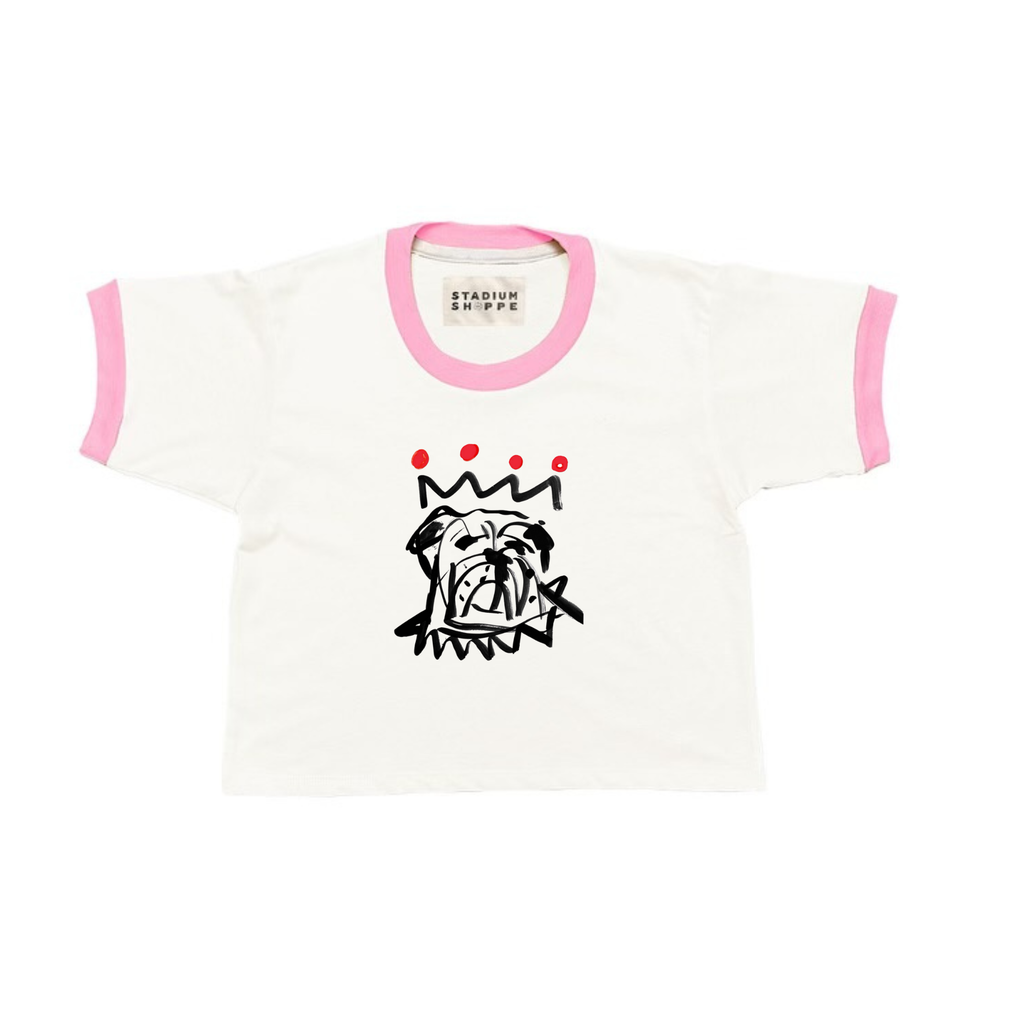 A perfectly cropped Georgia gameday tee featuring the exclusive Caroline Swetenburg Crown Bulldog on our ladies ringer. Tailor made in the US for Stadium Shoppe.
