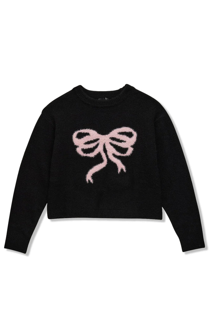 Knit Pullover Sweater w/ Sequin Embroidered Bow