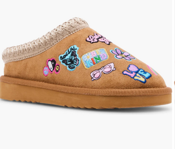 They will love the bright patches and warm faux-fur lining of this comfy slipper that they can putter around in all weekend long.
